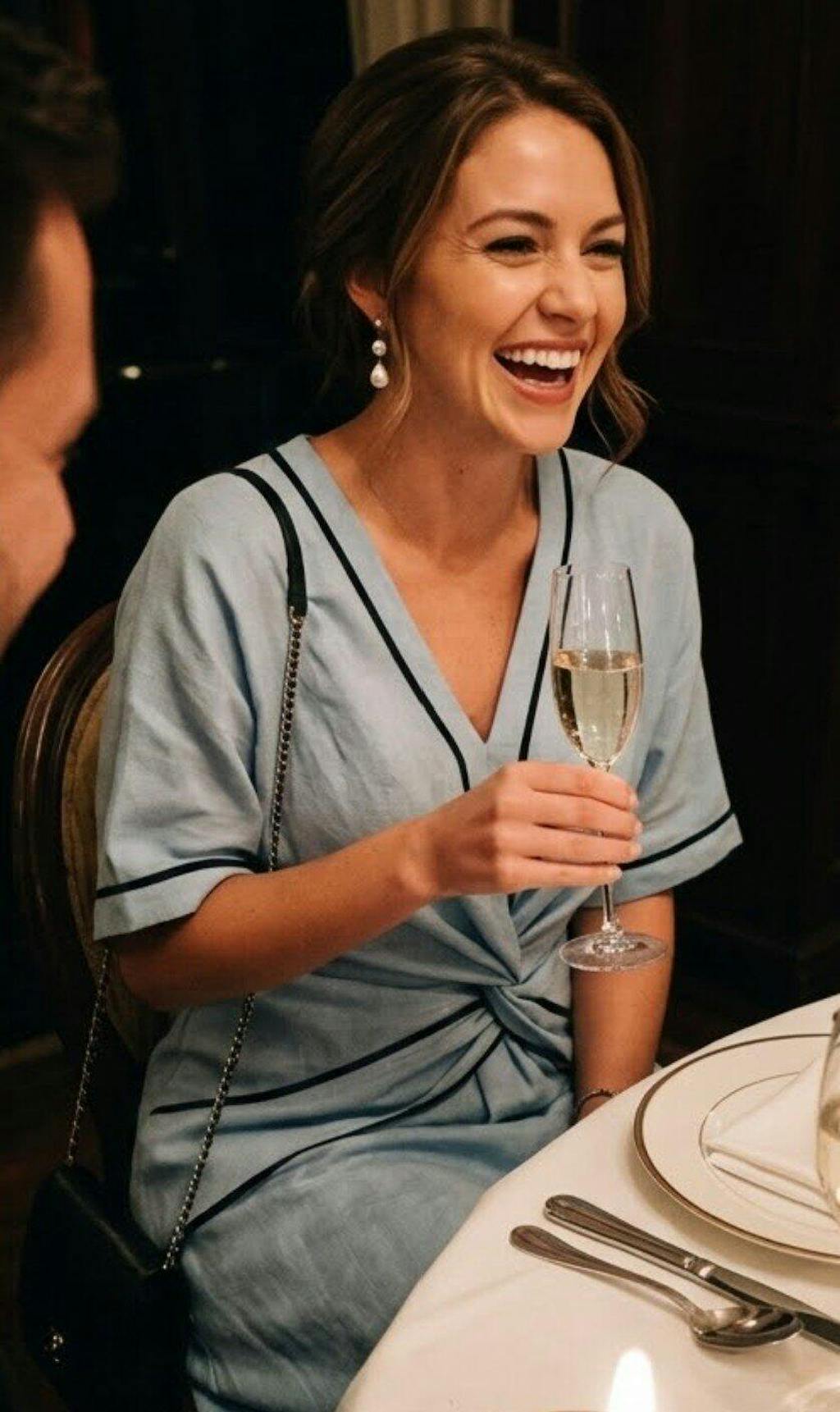 - Neckline: V-Neck Wrap Neckline
