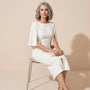 - Sleeve Length: Elbow-length cape sleeves with elegant split detail