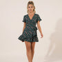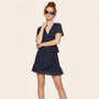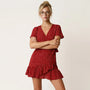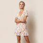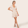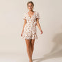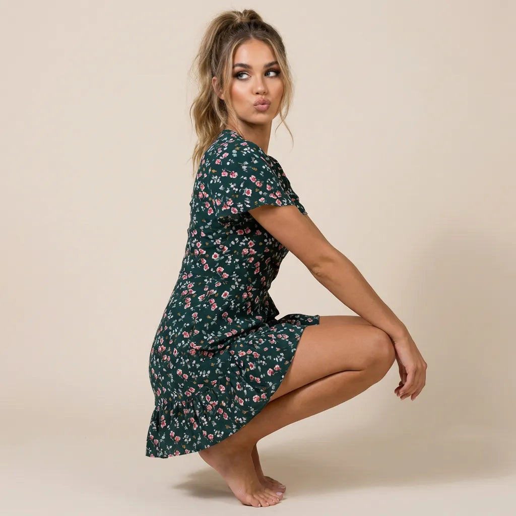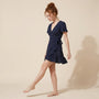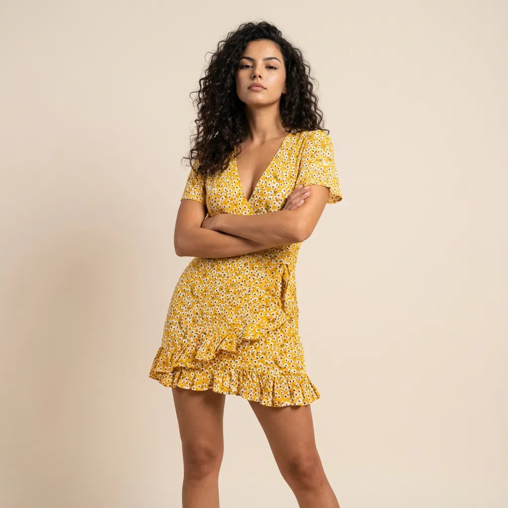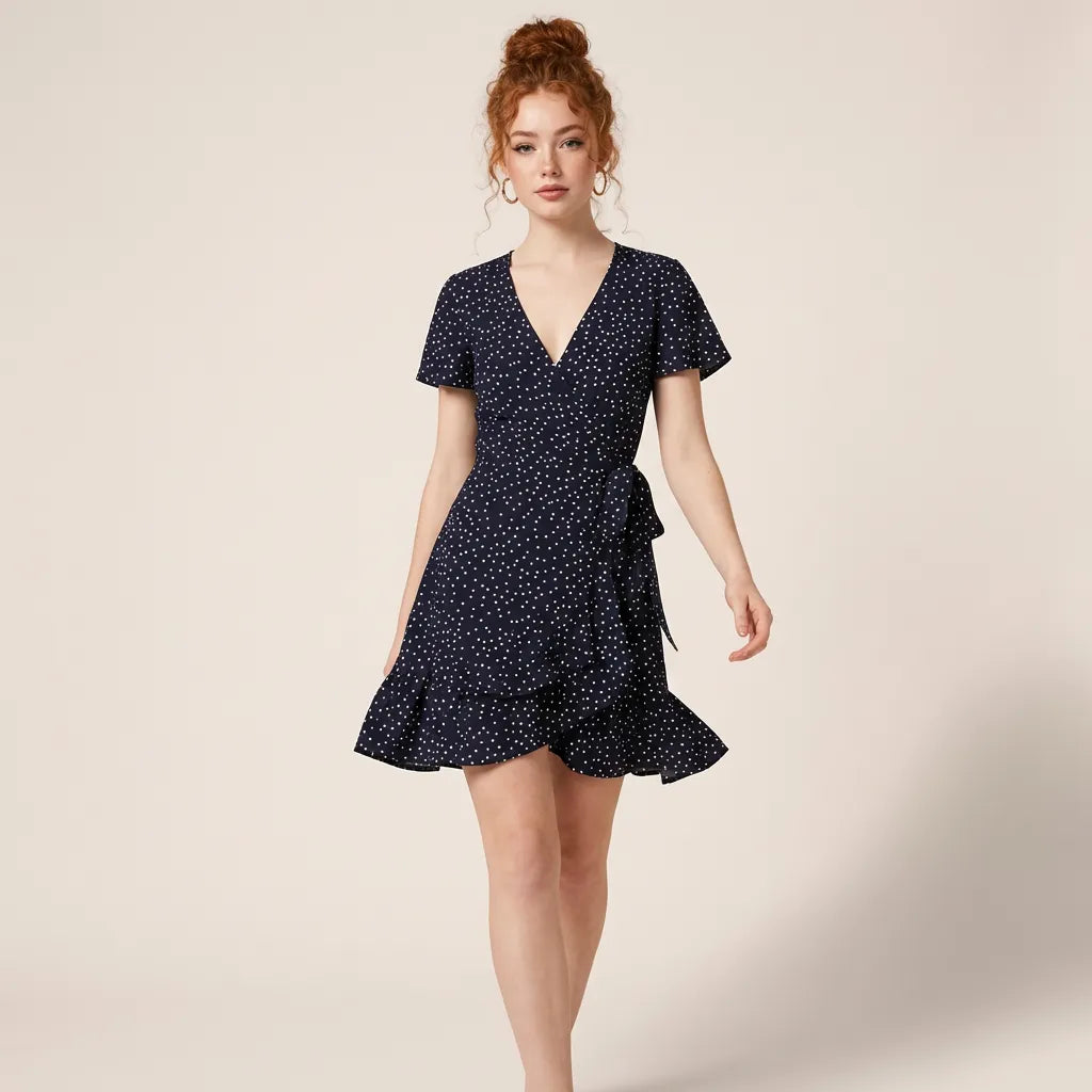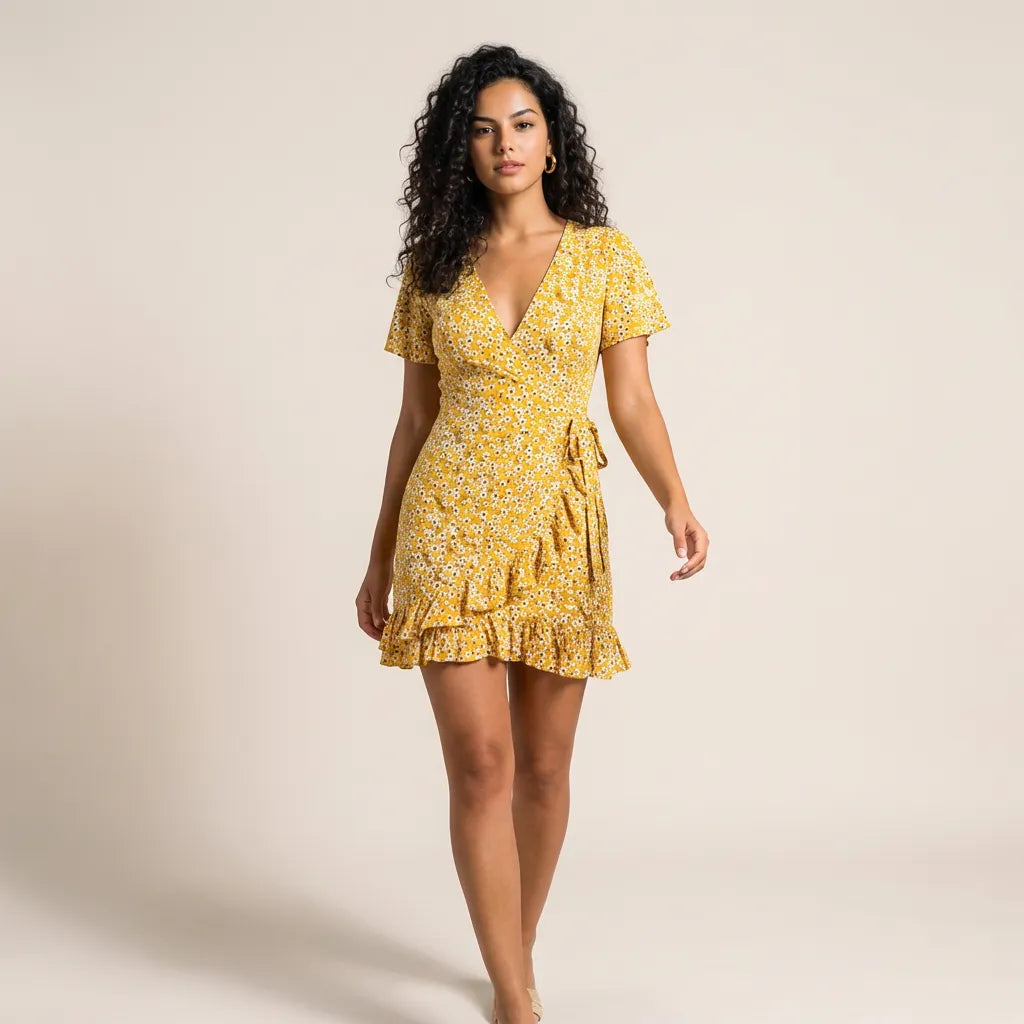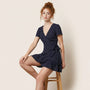 Designed for effortless summer charm, this deep V-neck mini dress blends elegance with everyday comfort. The adjustable drawstring waist enhances your natural shape while the flared A-line skirt adds graceful movement. Lightweight and breathable, it keeps you cool during warm days. The soft abstract print brings a playful yet sophisticated touch. Perfect for brunch dates, vacations, or casual evenings out.